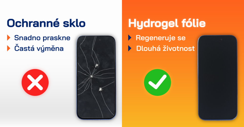 Chrání před nárazy a poškrábáním stejně jako kvalitní sklo. Při prasklém skle je nutná výměna. U hydrogelu tohle řešit nemusíš.