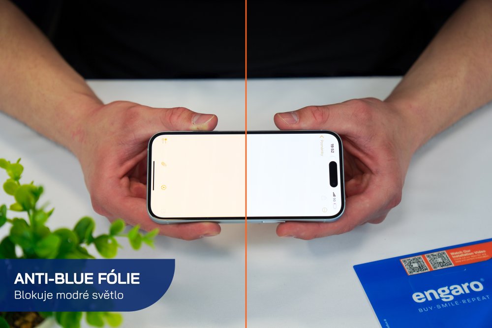 - Chrání tvé oči – fólie filtruje škodlivé modré světlo z displeje, které může mít negativní vliv na zrak při dlouhodobém používání telefonu.