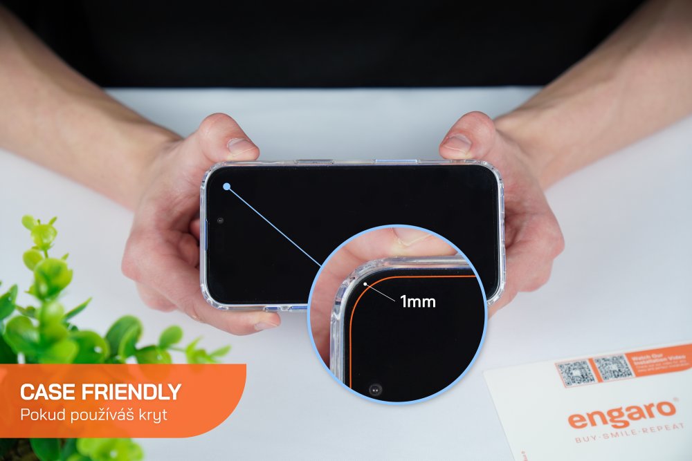 - Case friendly (užší variant) = Používáš kryt – užší folie (case friendly), vhodná pro kryty, které přesahují přes displej. Vyrobíme užší verzi folie, aby kryt nevyvíjel tlak na okraje.