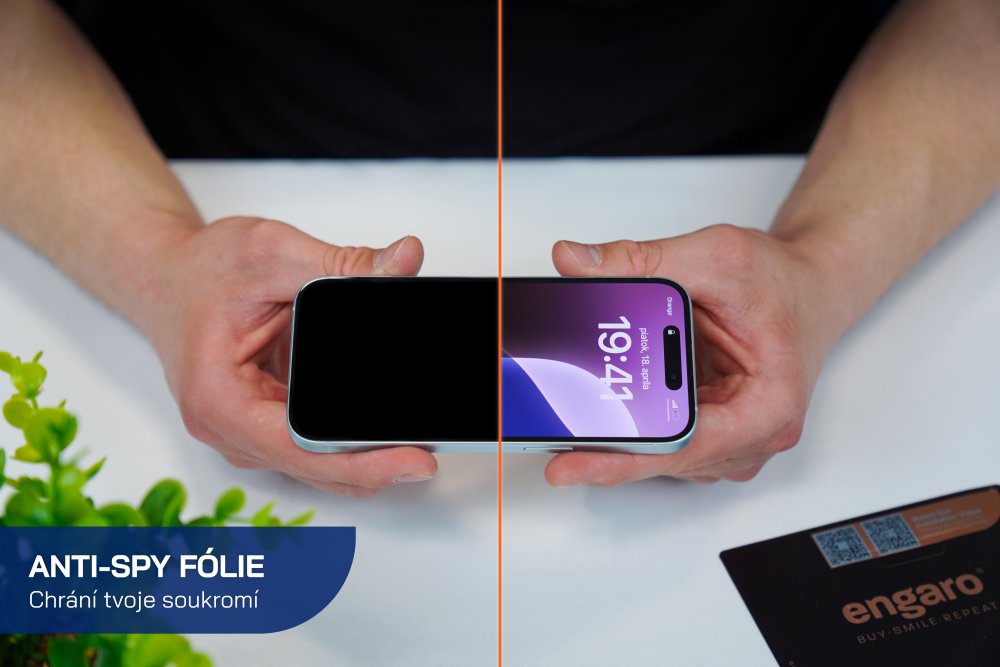 - Ochrání tvoje soukromí – fólie má speciální filtr, který zajistí, že obsah obrazovky je viditelný pouze přímo zepředu. Z bočních úhlů je displej tmavý nebo nečitelný, takže tvé zprávy, fotky a citlivá data zůstanou jen pro tvoje oči.